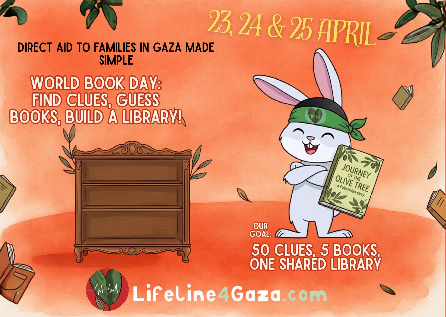 Welcome to the affiliate section of Lifeline4Gaza's World Book Day. Here you can add details about your organisation (like its name & website address) and also download promotion flyers tied to your organisation.